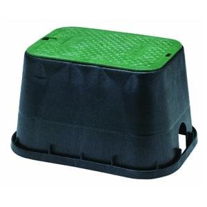 12x17 valve box w/cover. Structural foam polyethylene valve box and cover with locking latch, overlapping lip cover, and UV inhibitor. Black body with green cover.See Customer Reviews