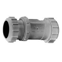 PVC SUMP PUMP CHECK VALVE - Use with sump and, or effluent pumps. Positive seal with long lasting Buna-N weighted flapper and gaskets. Easy installation with compression seal connections. No hose clamps, cementing or threading necessary. Allows 1 vertical movement of discharge pipe for easy removal of pump. Unitized body construction using spin welded process with permanent interlock of Buna-N Flapper. Valve serves as a union connection. Valve fits 1 1/4 to 1 1/2 IPS size PVC, ABS and galvanized pipe. 4 gaskets furnished with each valve 2-1 1/4 and 2-1 1/2.See Customer Reviews