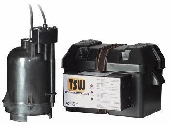 Little Giant TSW-SP-C 45 GPM - TSW Sump Pump w/ Auxiliary Power System, 10' power cord (507721)TSW Sump Pump and Auxiliary Power SystemThe TSW Submersible Sump Pump is an innovative alternative to the traditional submersible sump pumps. This pump features a solid state "IntelliSwitch" automatic switch and alarm circuit that eliminates the potential hang ups seen with float switches. The alarm portion of the circuitry is built into the "IntelliPlug" power cord plug. It has an audible alarm and a red warning light to indicate a high water condition in the sump. The "IntelliPlug" also has a green run light to show the pump is operatingLittle Giant TSW-SP-C 45 GPM - TSW Sump Pump w/ Auxiliary Power System, 10' power cord (507721) Specification: ; Horsepower: 1/3; Flow: 45 GPM @ 5' of Head; Cord Length: 10'; Shut Off: 32'; Voltage: 115; Hertz: 60; Amps: 4.5; Watts: 475; Weight: 19.7See Customer Reviews